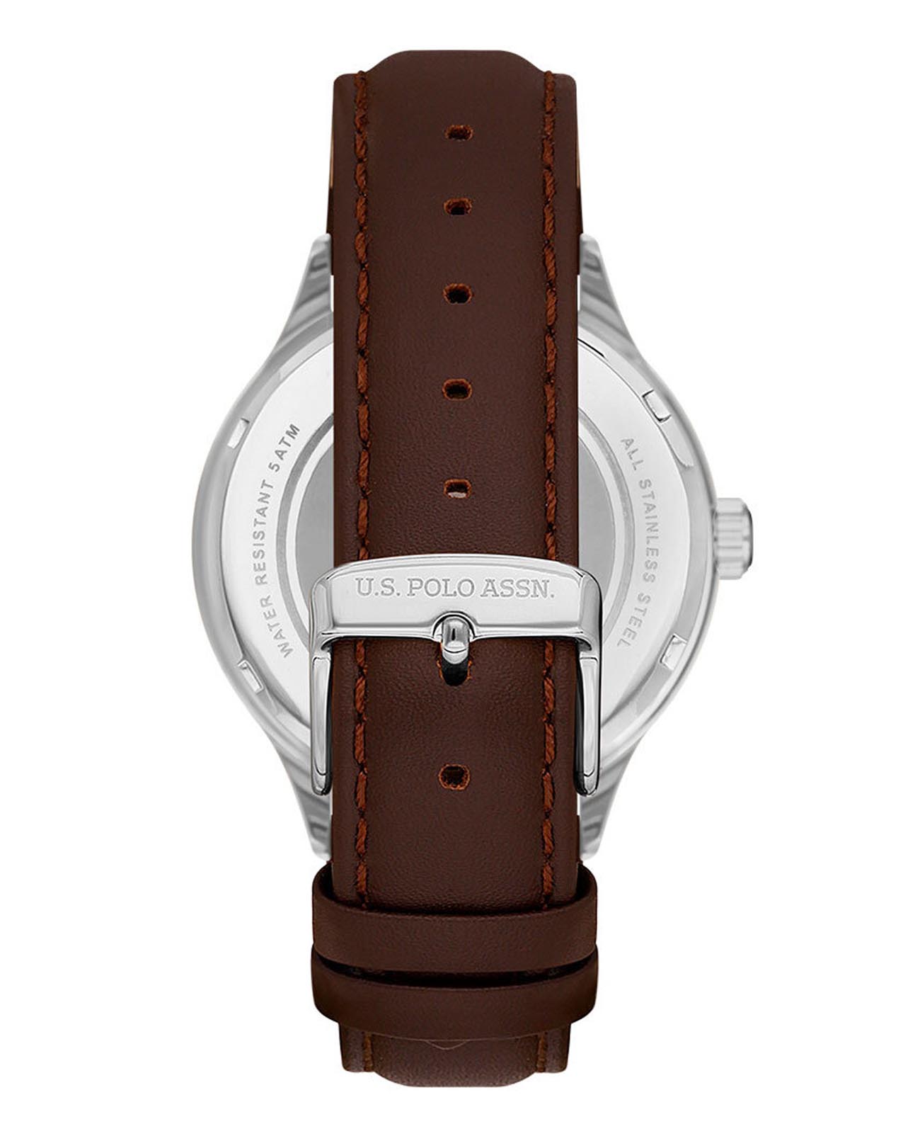 Мужские часы U.S. Polo Assn Fundamental USPA1069-02, кварцевый механизм с высокой точностью. Минеральное стеклоМинеральное стеклоМинеральное стекло представляет собой искусственно выращенный минерал кварца. Такое стекло отличается особой устойчивостью к повреждениям и царапинам. Уступает по некоторым качествам сапфировому стеклу. устойчивое к появлению царапин, обладающее высокой прозрачностью. Корпус изготовлен из нержавеющей стали. Центральные часовая, минутная и секундная стрелки. Стрелки с люминесцентным покрытиемЛюминесцентное покрытиеПозволяет считывать показания времени в темноте. Производители наносят на стрелки, часовые индексы, безель или поверхность циферблата светонакопительный состав, дающий холодное свечение.. Класс водозащиты: 50 метров, позволит защитить корпус от случайных брызг или капель дождя. Кожаный ремешок на стандартной застежке.