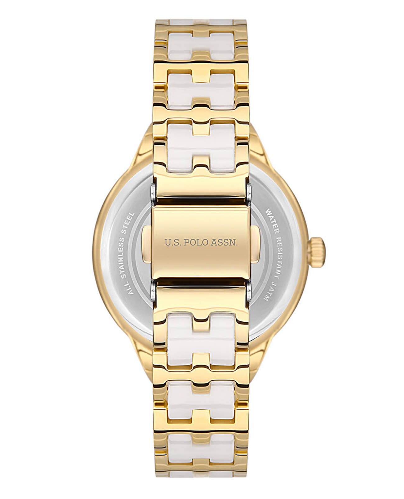 Женские часы U.S. Polo Assn Stile USPA2058-02, кварцевый механизм с высокой точностью. Минеральное стеклоМинеральное стеклоМинеральное стекло представляет собой искусственно выращенный минерал кварца. Такое стекло отличается особой устойчивостью к повреждениям и царапинам. Уступает по некоторым качествам сапфировому стеклу. устойчивое к появлению царапин, обладающее высокой прозрачностью. Корпус изготовлен из нержавеющей стали с IP-покрытиемIP-покрытиеМетод ионного напыления. Демонстрирует повышенную устойчивость к истиранию, окислению и химическим веществам. Под воздействием высокого давления и температуры около 1500°C молекулы металла надёжно соединяются с частицами корпуса часов.. БезельБезельВнешний ободок, закрепляющий стекло. В спортивных часах так называется поворотное кольцо с делениями на циферблате, выполняет роль таймера – замеряет отрезки времени на шкале. Неподвижный безель – элемент декора. Однонаправленно вращающийся безель на дайверских часах позволяет фиксировать моменты погружения и выныривания на поверхность. украшен кристаллами. Стрелки с люминесцентным покрытиемЛюминесцентное покрытиеПозволяет считывать показания времени в темноте. Производители наносят на стрелки, часовые индексы, безель или поверхность циферблата светонакопительный состав, дающий холодное свечение.. Класс водозащиты: 30 метров, позволит защитить корпус от случайных брызг или капель дождя. Стальной браслет с керамическими вставками и частичным IP-покрытиемIP-покрытиеМетод ионного напыления. Демонстрирует повышенную устойчивость к истиранию, окислению и химическим веществам. Под воздействием высокого давления и температуры около 1500°C молекулы металла надёжно соединяются с частицами корпуса часов. на раскладной застёжкеРаскладная застёжкаТакой тип застёжки используется только на браслетах из металла. Она никогда не раскрывается полностью, происходит разделение на 2 и более частей. Раскладывающая застёжка снизит вероятность потери часов к минимуму..