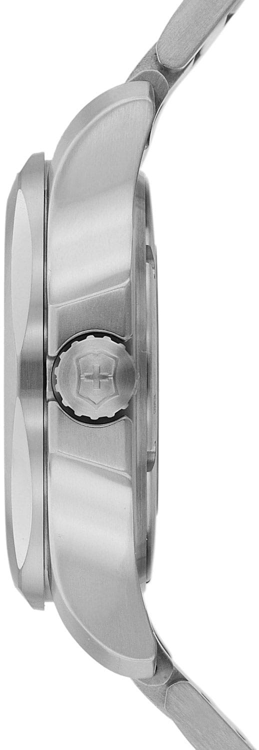 Мужские швейцарские часы Victorinox I.N.O.X. MECHANICAL 241837. Сапфировое стеклоСапфировое стеклоПрочный и надёжный материал из кристалла сапфира синтетического происхождения, характеризующийся особой твёрдостью и устойчивостью к царапинам и повреждениям. с трёхслойным антибликовым покрытием. Корпус часов выполнен из нержавеющей стали 316L. Стальной браслет на раскладной застёжкеРаскладная застёжкаТакой тип застёжки используется только на браслетах из металла. Она никогда не раскрывается полностью, происходит разделение на 2 и более частей. Раскладывающая застёжка снизит вероятность потери часов к минимуму.. Влагозащита: 200 метров, позволит плавать, нырять и заниматься другими водными видами спорта. Окошко даты находится в положении между 4 и 5 часов. Стрелки и метки с люминесцентным покрытиемЛюминесцентное покрытиеПозволяет считывать показания времени в темноте. Производители наносят на стрелки, часовые индексы, безель или поверхность циферблата светонакопительный состав, дающий холодное свечение..