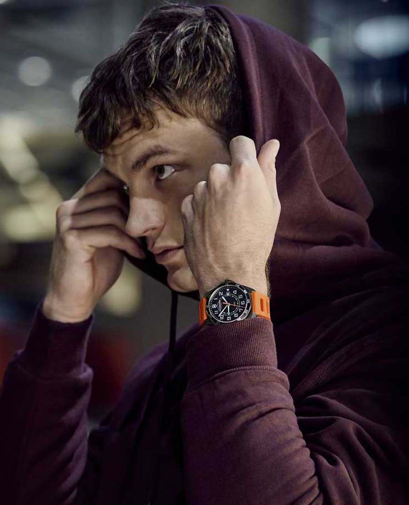 Мужские швейцарские часы-хронографХронографФункция позволяет измерять отрезки времени с особой точностью: часы, минуты, секунды. Верным признаком хронографа является наличие на циферблате 3 дополнительных окошек-счётчиков. Victorinox Fieldforce Sport Chronograph 241897 с надёжным кварцевым механизмом. Сапфировое стеклоСапфировое стеклоПрочный и надёжный материал из кристалла сапфира синтетического происхождения, характеризующийся особой твёрдостью и устойчивостью к царапинам и повреждениям. с трёхслойным антибликовым покрытием. Корпус часов выполнен из нержавеющей стали с PVD-покрытиемPVDУльтратонкое покрытие наносится в технике вакуумного напыления, сочетает в себе нитрид титана особой прочности со слоем золота или оксида хрома. Несёт в себе декоративную или защитную функцию.. Второй часовой пояс в 24-х часовом формате времени отображается дополнительной центральной стрелкой. Окошко даты находится в положении 3 часов, стрелки и метки с люминесцентным покрытиемЛюминесцентное покрытиеПозволяет считывать показания времени в темноте. Производители наносят на стрелки, часовые индексы, безель или поверхность циферблата светонакопительный состав, дающий холодное свечение.. Класс водозащиты: 100 метров, позволит плавать, нырять и заниматься другими водными видами спорта. Практичный резиновый ремешок на стандартной застёжке.