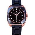 Женские кварцевые часы Wainer — это элегантный аксессуар, воплощающий швейцарское качество и изысканный дизайн. Модель выполнена в квадратной форме из стали с PVD-покрытиемPVDУльтратонкое покрытие наносится в технике вакуумного напыления, сочетает в себе нитрид титана особой прочности со слоем золота или оксида хрома. Несёт в себе декоративную или защитную функцию. розового цвета и керамической вставкой, что придаёт ей прочность и устойчивость к царапинам. Циферблат чёрного цвета гильоширован в зоне меток и дополнен логотипом бренда, а его поверхность украшена штриховыми и точечными элементами с люминесцентным покрытиемЛюминесцентное покрытиеПозволяет считывать показания времени в темноте. Производители наносят на стрелки, часовые индексы, безель или поверхность циферблата светонакопительный состав, дающий холодное свечение. и фианитами, что делает его привлекательным и выразительным. Секундная стрелка на конце декорирована буквой W, а рифлёная заводная головка с защитой оснащена фирменным логотипом, подчёркивая внимание к деталям. Защиту циферблата обеспечивает сапфировое стеклоСапфировое стеклоПрочный и надёжный материал из кристалла сапфира синтетического происхождения, характеризующийся особой твёрдостью и устойчивостью к царапинам и повреждениям., устойчивое к повреждениям и обеспечивающее чёткую видимость показаний при любом освещении. Керамический браслет шириной 16 мм гармонично сочетается с корпусом и добавляет модели изысканности. Часы водонепроницаемы до 30 метров (, что позволяет использовать их при мытье рук или под лёгким дождём. Механизм калибра Ronda 705 гарантирует точность хода и надёжность. Эти часы станут универсальным аксессуаром для тех, кто ценит сочетание стиля, функциональности и швейцарского мастерства — идеальный выбор для повседневной носки и торжественных случаев.