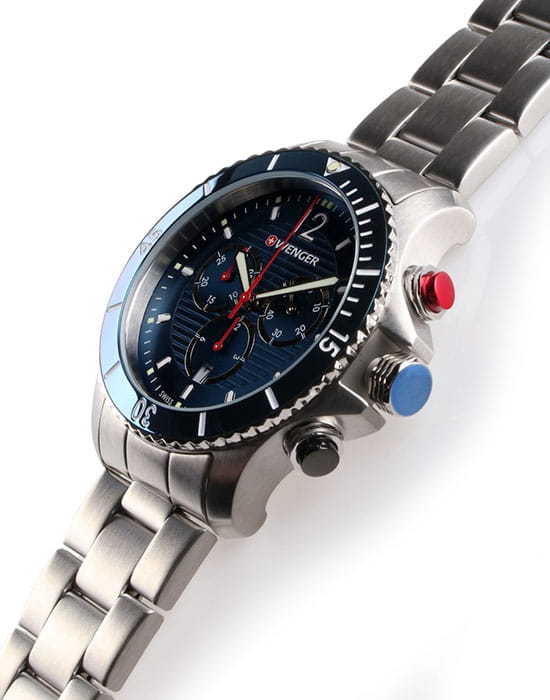 Мужские швейцарские часы с хронографом Wenger 01.0643.111, кварцевый механизм с высокой точностью. Класс водозащиты: 200 метров, позволит плавать, нырять и заниматься другими водными видами спорта. Корпус часов изготовлен из стали, разноцветного цвета.