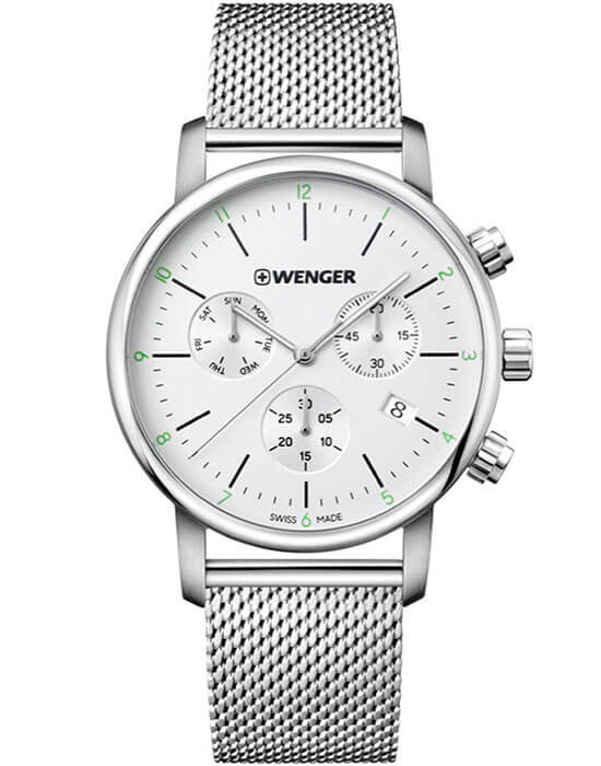 Мужские швейцарские часы с хронографом Wenger 01.1743.106, кварцевый механизм с высокой точностью. Класс водозащиты: 100 метров, позволит плавать, нырять и заниматься другими водными видами спорта. Корпус часов изготовлен из стали, цвета.